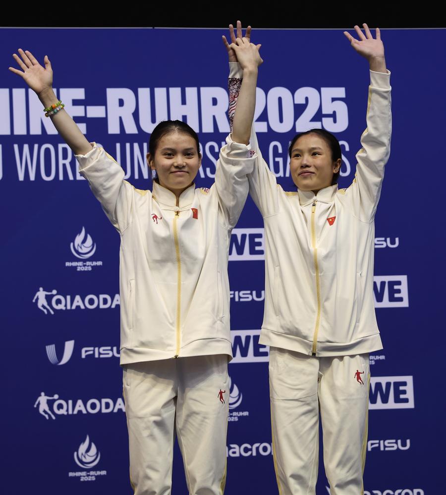 BERLIN, July 17 (Xinhua) -- He Yanwei and Lu Wei secured the first gold medal for the Chinese delegation in the women's synchronized 10-meter platform diving, as the Rhine-Ruhr 2025 FISU World University Games competitions kicked off on Thursday.