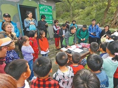 Staff members hold a bird-related science popularization activity at the Liaoning Snake Island-Laotie Mountain National Nature Reserve in Lushunkou district, Dalian city, northeast China's Liaoning Province. (Photo courtesy of the management bureau of the Liaoning Snake Island-Laotie Mountain National Nature Reserve)