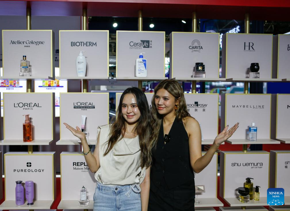 Visitors pose for photos at the booth of L'Oreal during the third China International Supply Chain Expo (CISCE) in Beijing, capital of China, July 17, 2025. Themed on "Connecting the World for a Shared Future," the 2025 CISCE runs from July 16 to 20, gathering more than 650 companies and institutions from 75 countries, regions and international organizations. Overseas exhibitors accounted for 32 percent among all, or 3 percentage points higher compared to the previous edition. This year's event also saw more than 170 visitor delegations from abroad, and over 230 exhibitors here are first-timers. (Xinhua/Ding Hongfa)