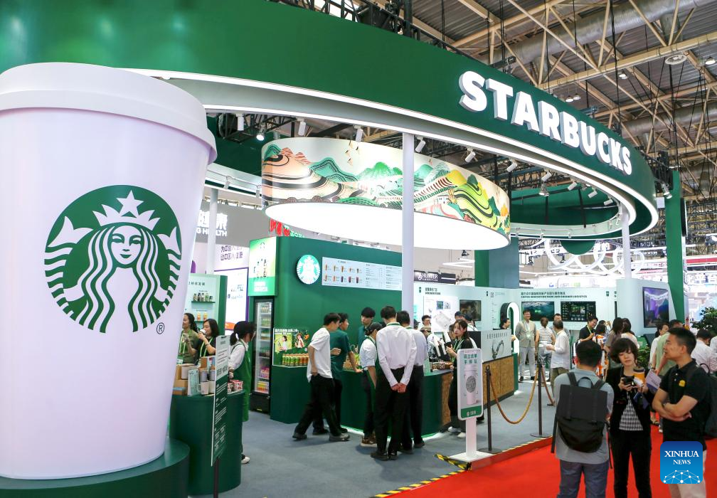 This photo taken on July 17, 2025 shows the booth of Starbucks during the third China International Supply Chain Expo (CISCE) in Beijing, capital of China. Themed on "Connecting the World for a Shared Future," the 2025 CISCE runs from July 16 to 20, gathering more than 650 companies and institutions from 75 countries, regions and international organizations. Overseas exhibitors accounted for 32 percent among all, or 3 percentage points higher compared to the previous edition. This year's event also saw more than 170 visitor delegations from abroad, and over 230 exhibitors here are first-timers. (Xinhua/Ding Hongfa)