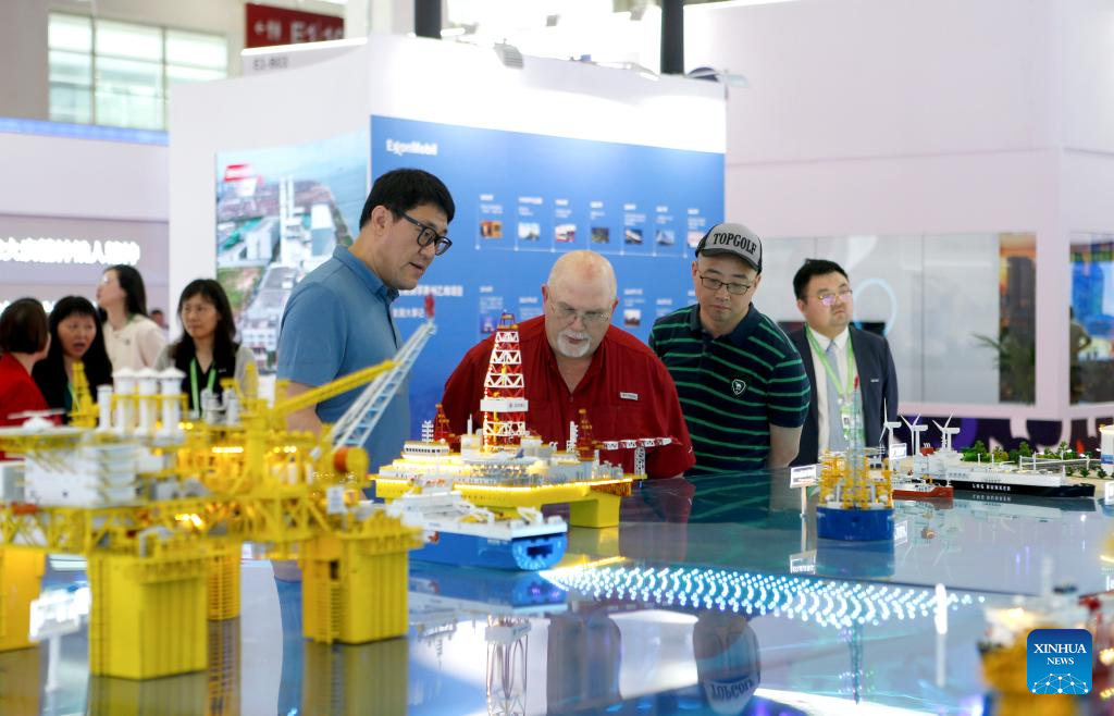 Visitors are seen at the booth of China National Offshore Oil Corporation (CNOOC) during the third China International Supply Chain Expo (CISCE) in Beijing, capital of China, July 16, 2025. Themed on "Connecting the World for a Shared Future," the 2025 CISCE runs from July 16 to 20, gathering more than 650 companies and institutions from 75 countries, regions and international organizations. Overseas exhibitors accounted for 32 percent among all, or 3 percentage points higher compared to the previous edition. This year's event also saw more than 170 visitor delegations from abroad, and over 230 exhibitors here are first-timers. (Xinhua/Ding Hongfa)