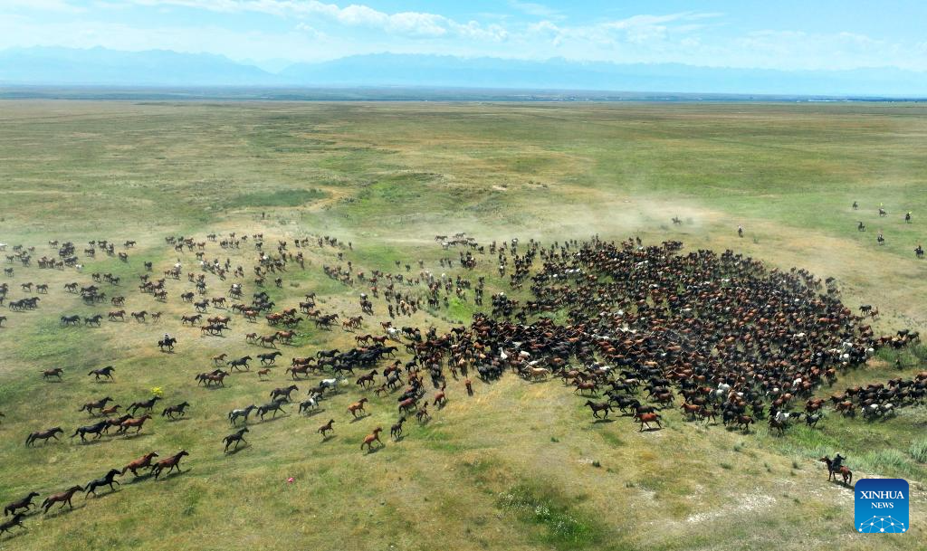 Horses run during a tourism festival in Zhaosu, northwest China's Xinjiang Uygur Autonomous Region, July 19, 2025. (Xinhua/Wang Jingqiang)