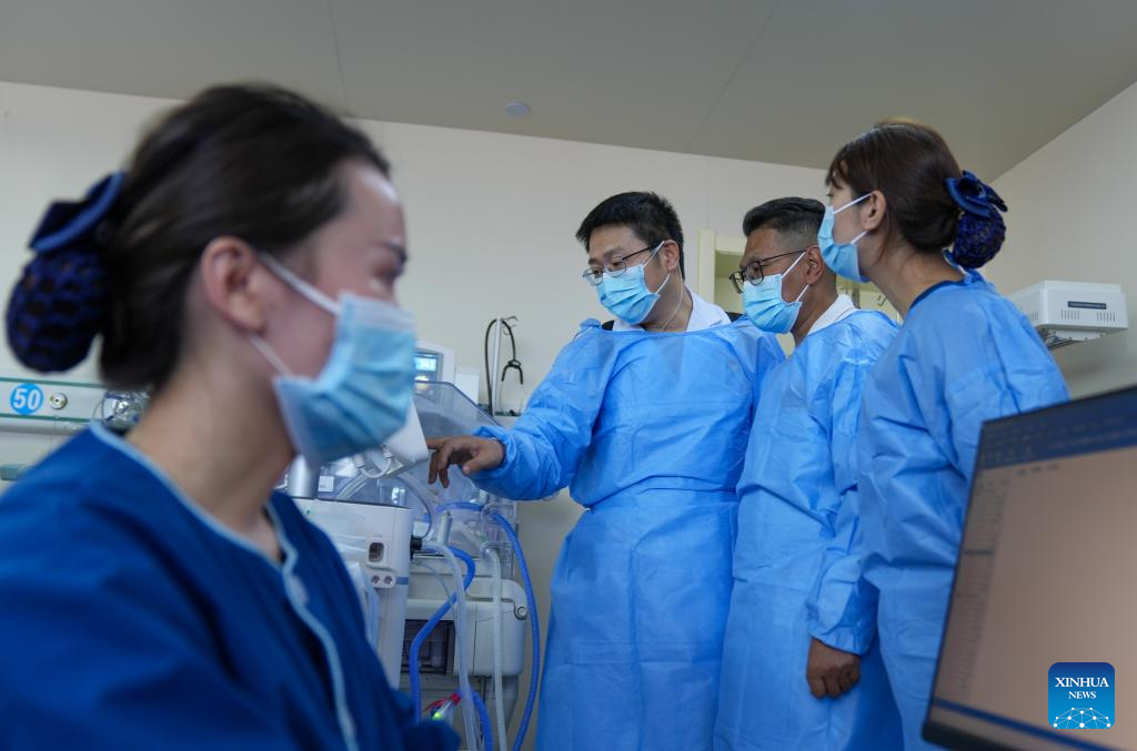 Doctor Tian Congliang (2nd L) from the First Affiliated Hospital of Dalian Medical University discusses a premature baby case with his colleagues at Nagqu Renmin Hospital in Nagqu City, southwest China's Xizang Autonomous Region, July 18, 2025. Since 2016, Liaoning Province has sent 150 medical experts in 9 batches to Nagqu. They have contributed to the training of 225 local medical staff members and the improvement of local medical treatment level. (Xinhua/Jigme Dorje)