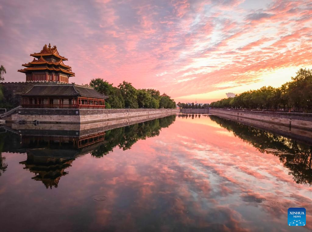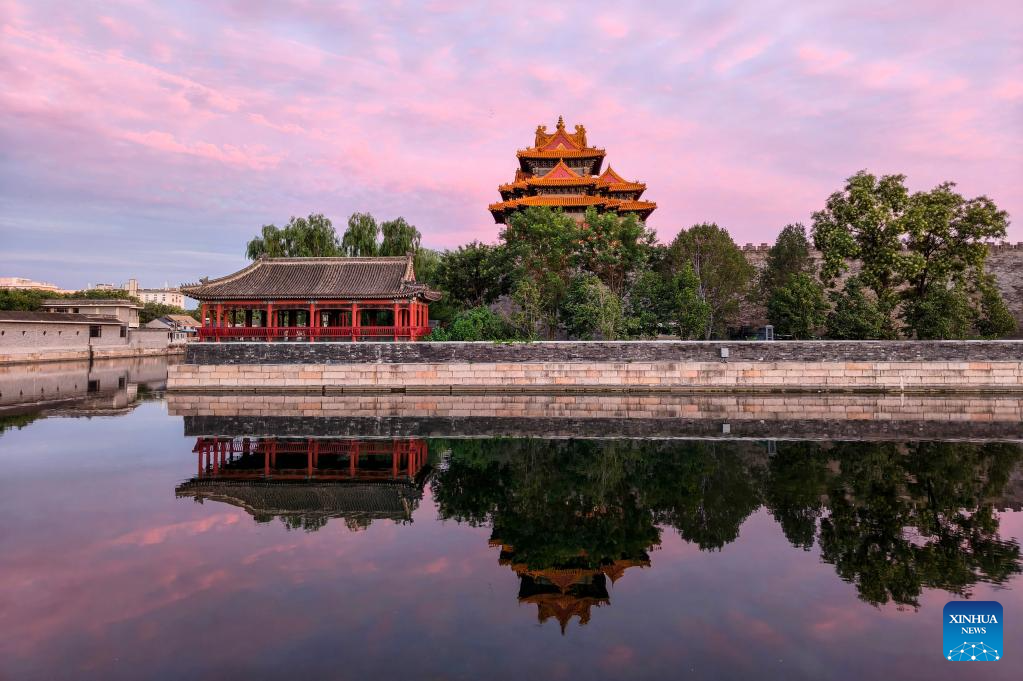 This photo taken by cell phone on July 20, 2025 shows a turret of the Palace Museum in evening glow in Beijing, capital of China. (Xinhua/Chen Yehua)