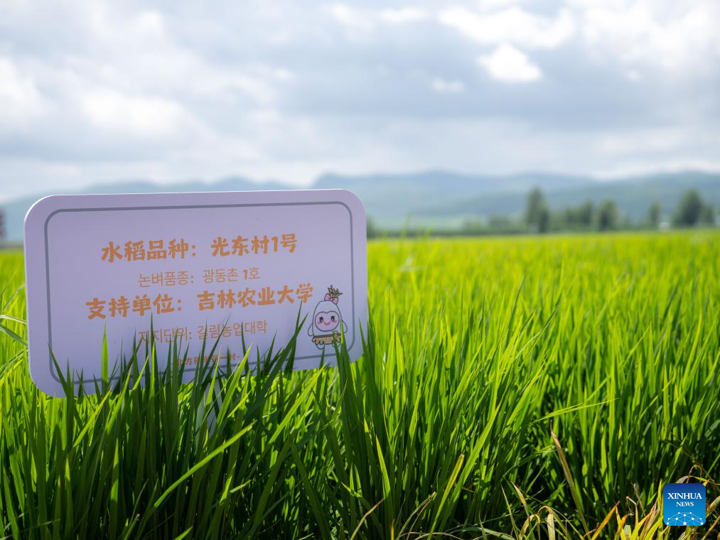 This photo taken on July 18, 2025 shows an organic paddy field in Guangdong Village, Helong City, northeast China's Jilin Province, July 18, 2025. Guangdong, a border village in Jilin Province of northeast China, received over 200,000 visits in 2024, accumulating an income of over 1 million yuan (about 139,317 U.S. dollars). (Xinhua/Shao Zedong)