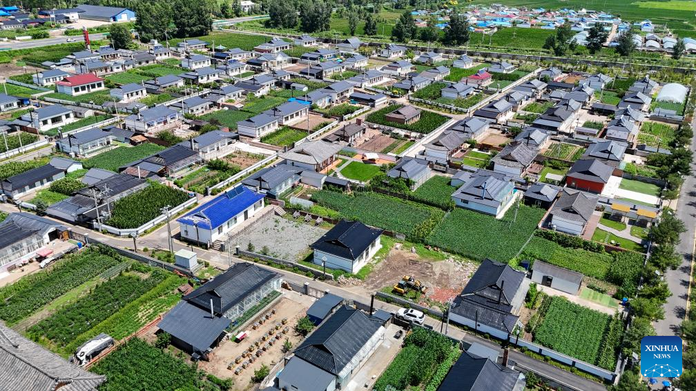 An aerial drone photo taken on July 18, 2025 shows a view of the Guangdong Village, Helong City, northeast China's Jilin Province. Guangdong, a border village in Jilin Province of northeast China, received over 200,000 visits in 2024, accumulating an income of over 1 million yuan (about 139,317 U.S. dollars). (Xinhua/Shao Zedong)