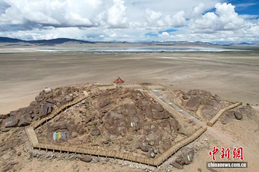 Aerial photo taken on July 20, 2025 shows the rock painting ruins park in Yanhu Township, Geji County, Ali Prefecture, Xizang Autonomous Region. (Photo: China News Service/Zhang Xiangyi)