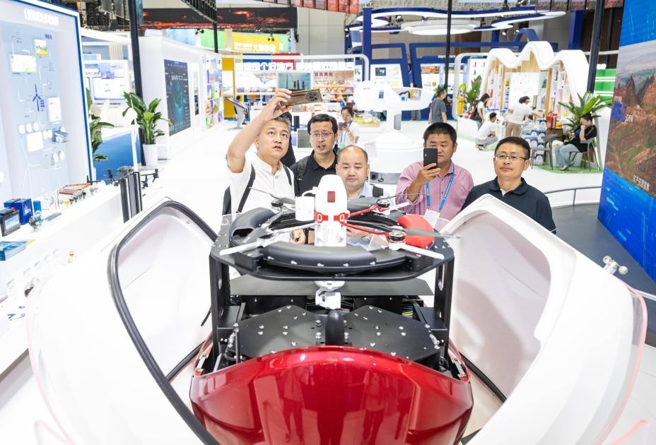 A drone is exhibited at the 2025 (China) Eurasia Commodity and Trade Expo held in Urumqi, northwest China's Xinjiang Uygur autonomous region, June 26. (People's Daily Online/He Long)