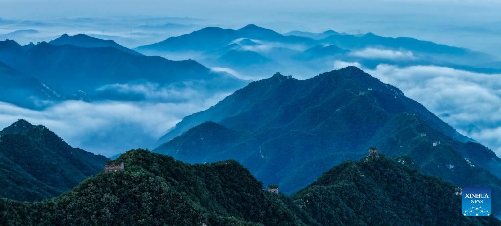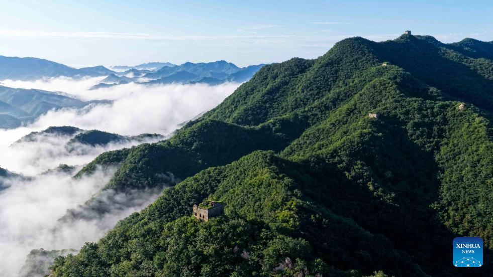 An aerial drone photo taken on July 21, 2025 shows a view of the Yumuling section of the Great Wall in Qianxi County, north China's Hebei Province. (Photo by Liu Mancang/Xinhua)