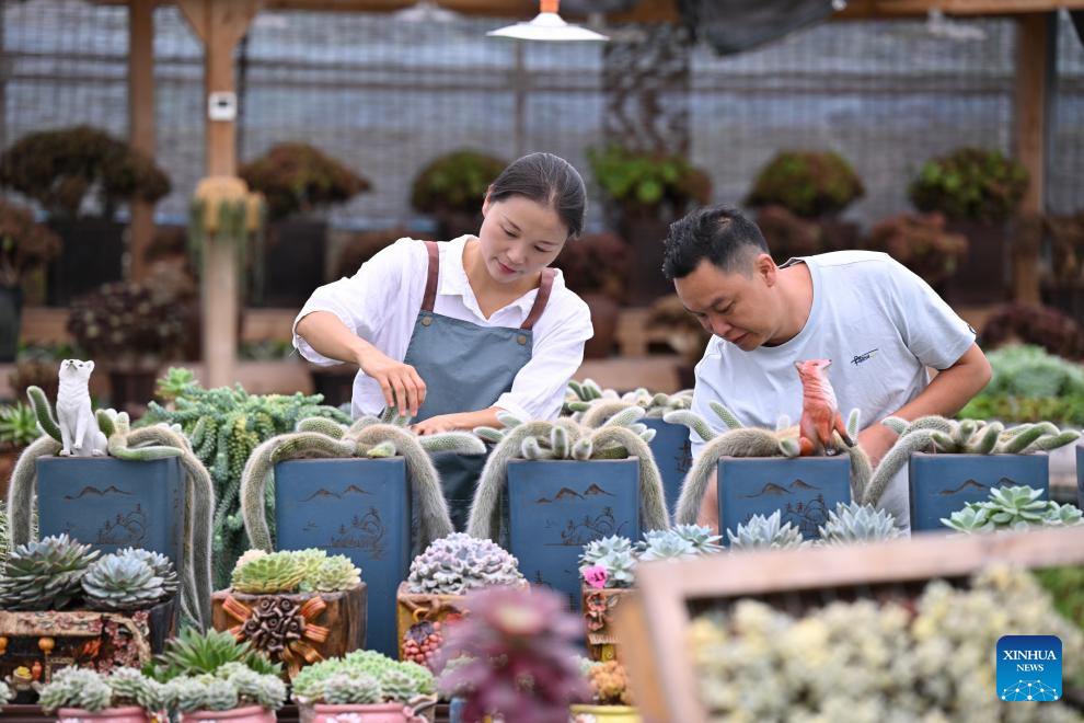In recent years, Liu has promoted her succulent potted plants to local villagers and encouraged them to engage in this beautiful career for prosperity. "From a balcony to a garden full of hope, and from an individual hobby to a collective path, I hope to inspire more friends to lead lives as vibrant and fulfilling as succulents," said Liu. (Xinhua/Jiang Kehong)