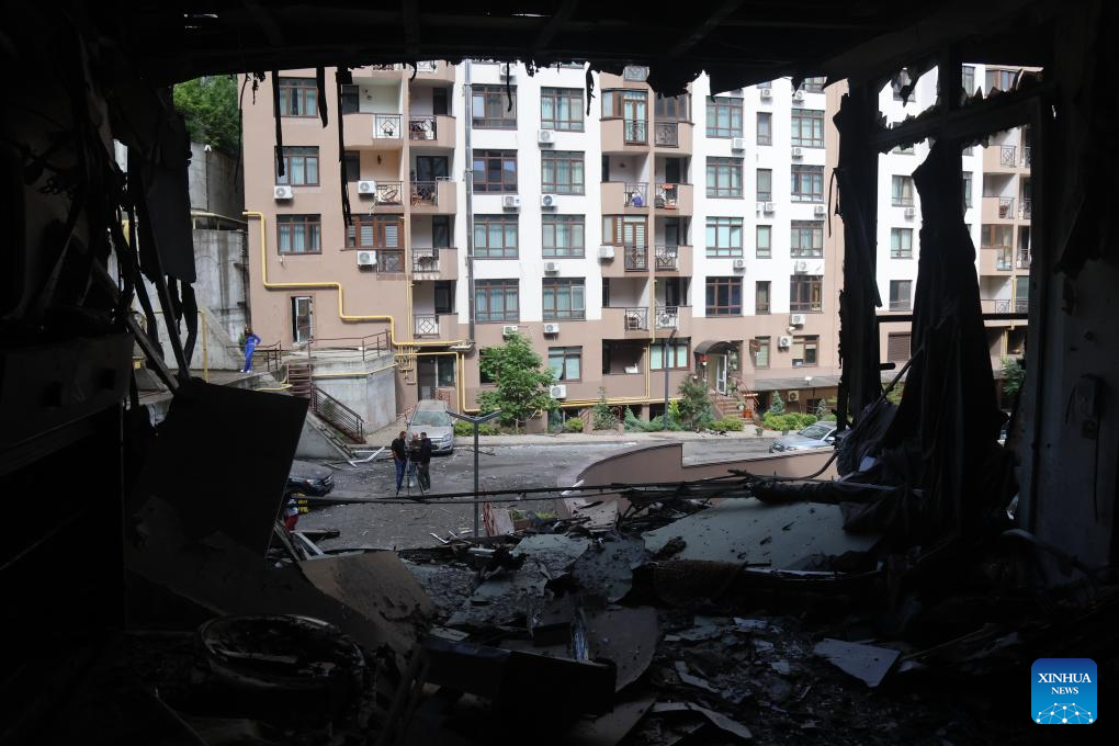 A damaged residential building is pictured after an air strike in the Shevchenkivskyi district of Kiev, Ukraine, July 21, 2025. Two people were killed and 15 others injured in a wave of Russian missile and drone strikes on Ukraine's capital and the western region of Ivano-Frankivsk early Monday, said Ukrainian authorities.