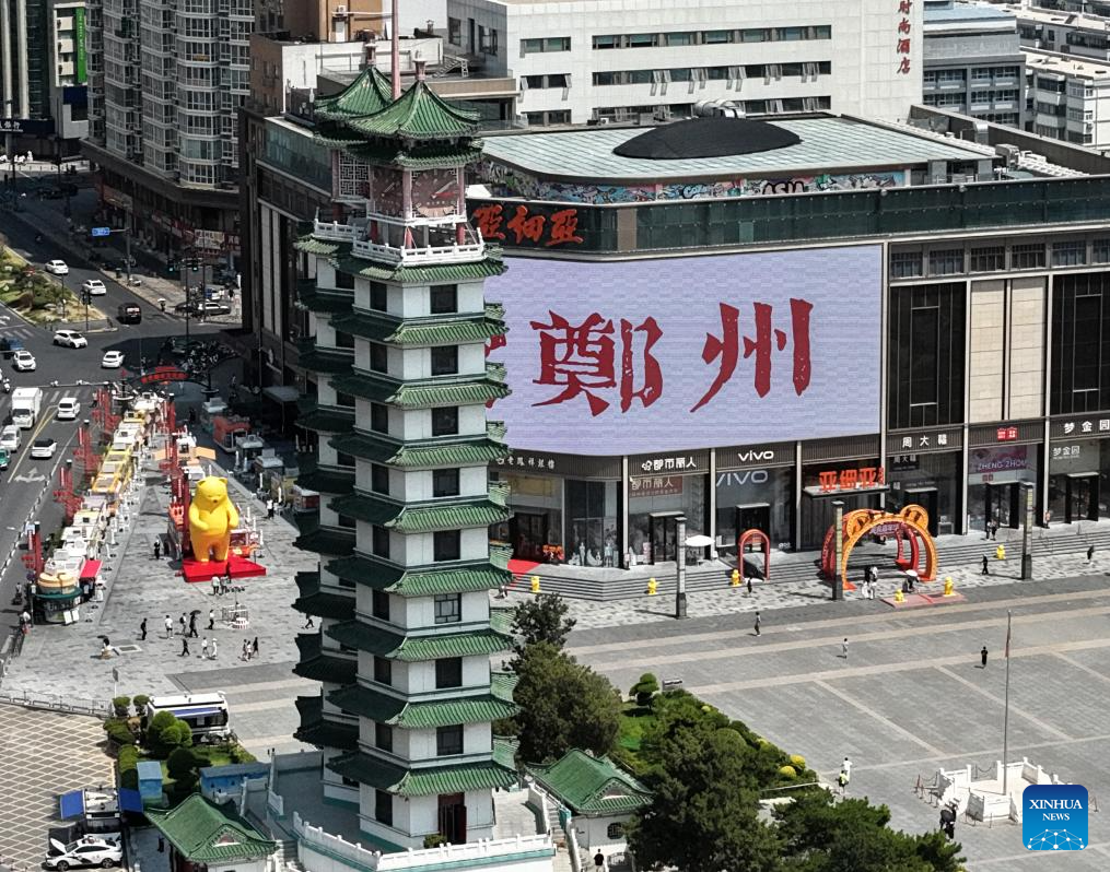 An aerial drone photo taken on July 17, 2025 shows the Erqi Square in Zhengzhou, central China's Henan Province. Located in central China, Zhengzhou is renowned as a regional hub for sci-tech innovation, a national historical and cultural city, and an international comprehensive transportation hub. In recent years, Zhengzhou has been dedicated to promoting high-quality development, enhancing its overall competitiveness, and integrating into the national market.