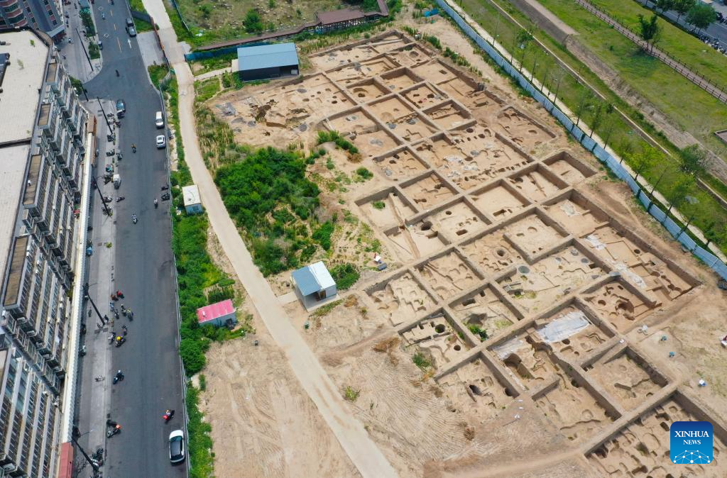 An aerial drone photo taken on July 15, 2025 shows a national archaeological park in Zhengzhou, central China's Henan Province. Located in central China, Zhengzhou is renowned as a regional hub for sci-tech innovation, a national historical and cultural city, and an international comprehensive transportation hub. In recent years, Zhengzhou has been dedicated to promoting high-quality development, enhancing its overall competitiveness, and integrating into the national market.
