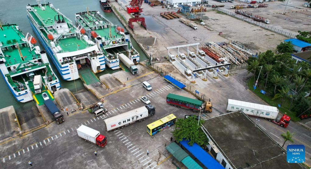 Passenger, freight ferry service resumed in Qiongzhou Strait, S China's Hainan