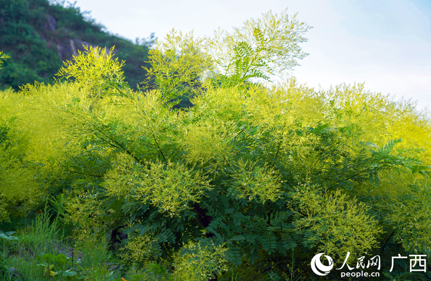 Photo shows golden Chinese scholar tree flowers at a family farm in Baibao township, Quanzhou county, Guilin city, south China's Guangxi Zhuang Autonomous Region. (Photo/People's Daily Online)