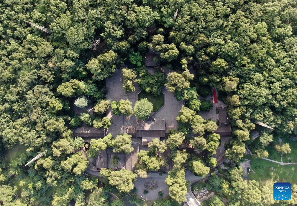 This photo shows the Wuhouci Shrine in Mianxian County in Hanzhong, northwest China's Shaanxi Province, July 22, 2025. Hanzhong is nestled between the Qinling and Daba Mountains, with the Hanjiang River, a tributary of the Yangtze River, flowing through the city. For more than 2,300 years, it has served as a vital nexus for the river network and transportation routes connecting the north and south. The city is rich in resources and, unlike other areas in Shaanxi, it shows distinct characteristics in dialect and culinary traditions influenced by southwest China's Sichuan. (Xinhua/Li Yibo)