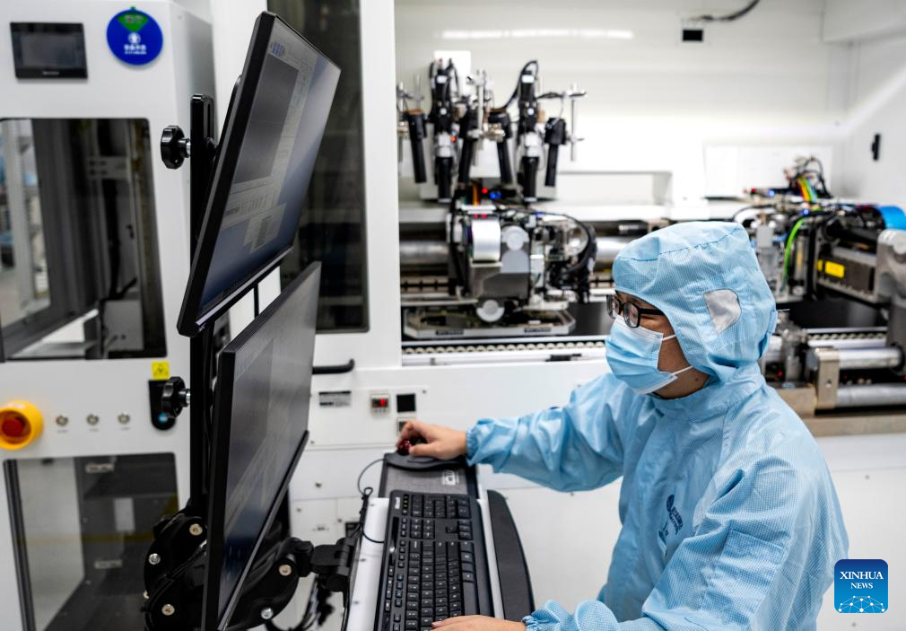 A worker operates at a workshop of Macrochip Technology Co., Ltd. in Quanzhou, southeast China's Fujian Province, July 24, 2025. Riding on digital transformation as a driving force, Quanzhou City managed to enhance the quality and efficiency of its industrial economy in recent years. This has laid a sustainable ground for the upgrading of the traditional sectors, and accelerated the shift from simple manufacturing to smart creation. (Xinhua/Wei Peiquan)
