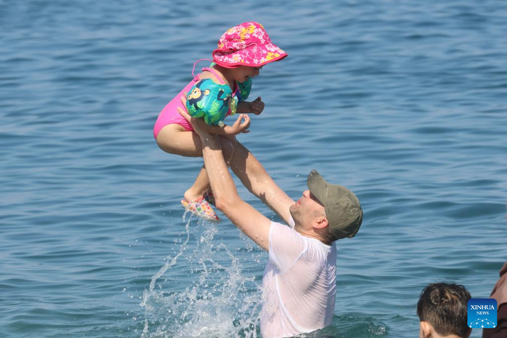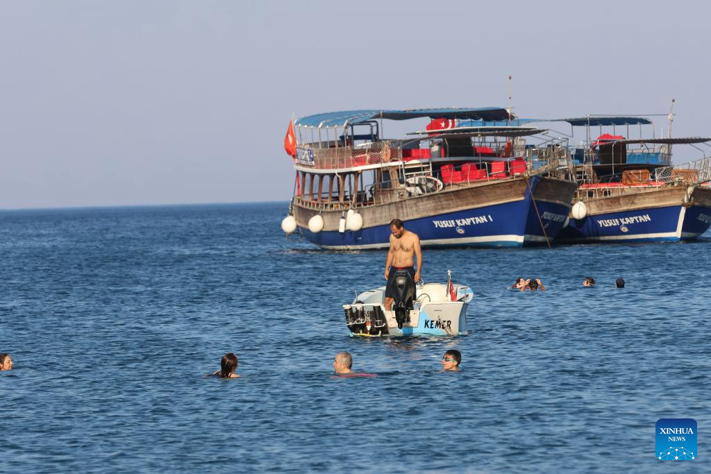 People enjoy leisure time at Adrasan beach in Antalya, Trkiye, on July 25, 2025. (Mustafa Kaya/Handout via Xinhua)