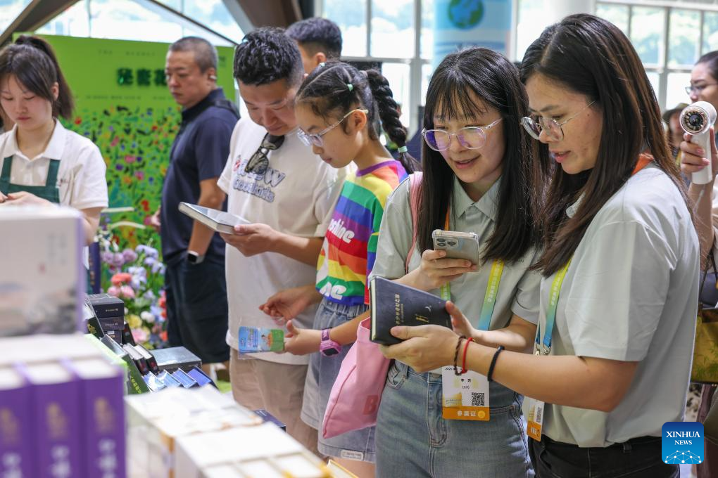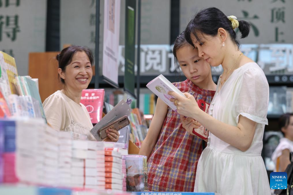 Visitors browse books during the 33rd National Book Expo in southwest China's Chongqing, July 25, 2025. Over 1,000,000 publications of various types are on display, either online or on site, at the expo, which kicked off here on Friday with free admission, and will last till July 28. (Xinhua/Chen Cheng)