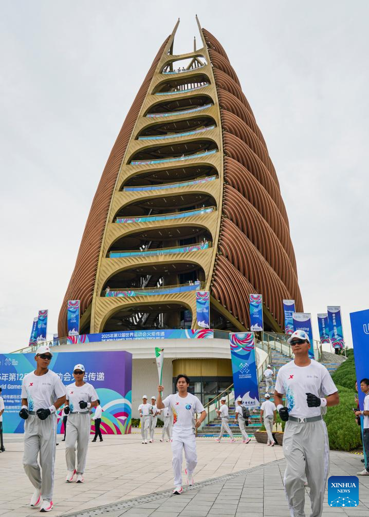CHENGDU, July 26 (Xinhua) -- As a soft breeze drifted through the morning air, the torch relay for the World Games was held for the first time in the event's history on Saturday, launching from the iconic Sanxingdui archaeological site in southwest China's Sichuan Province and tracing a route through major landmarks of Chinese civilization.