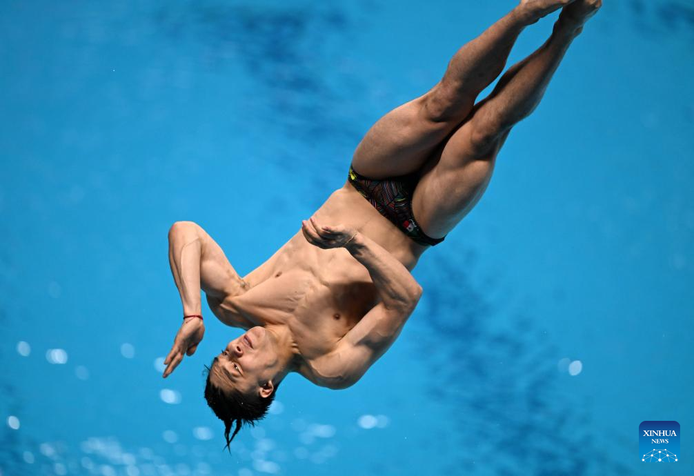 Osmar Olvera Ibarra of Mexico competes during the men's 1m springboard final of diving at the World Aquatics Championships in Singapore, July 27, 2025. (Xinhua/Xue Yuge)