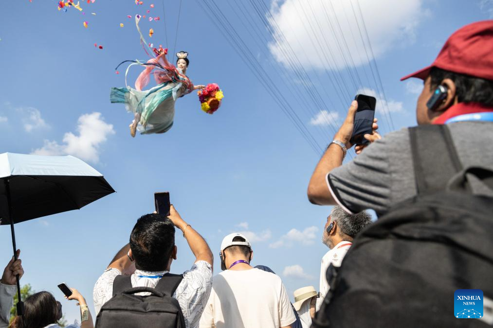 Participants of the Shanghai Cooperation Organization (SCO) Media and Think Tank Summit watch a performance at a scenic spot in Kaifeng, central China's Henan Province, July 26, 2025. The SCO Media and Think Tank Summit is held in Zhengzhou from July 23 to 27. Participants are invited to visit various locations in Henan during the summit. (Xinhua/Bai Xueqi)