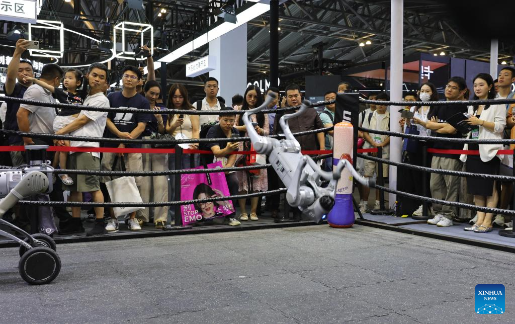 The ongoing 2025 World AI Conference showcases the world's latest AI advancements while providing a platform for visitors to access AI products and technologies. (Xinhua/Fang Zhe)