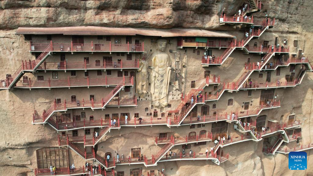 Tourists visit Maiji Mountain Grottoes in Tianshui City, northwest China's Gansu Province on July 16, 2025. (Xinhua/Chen Bin)
