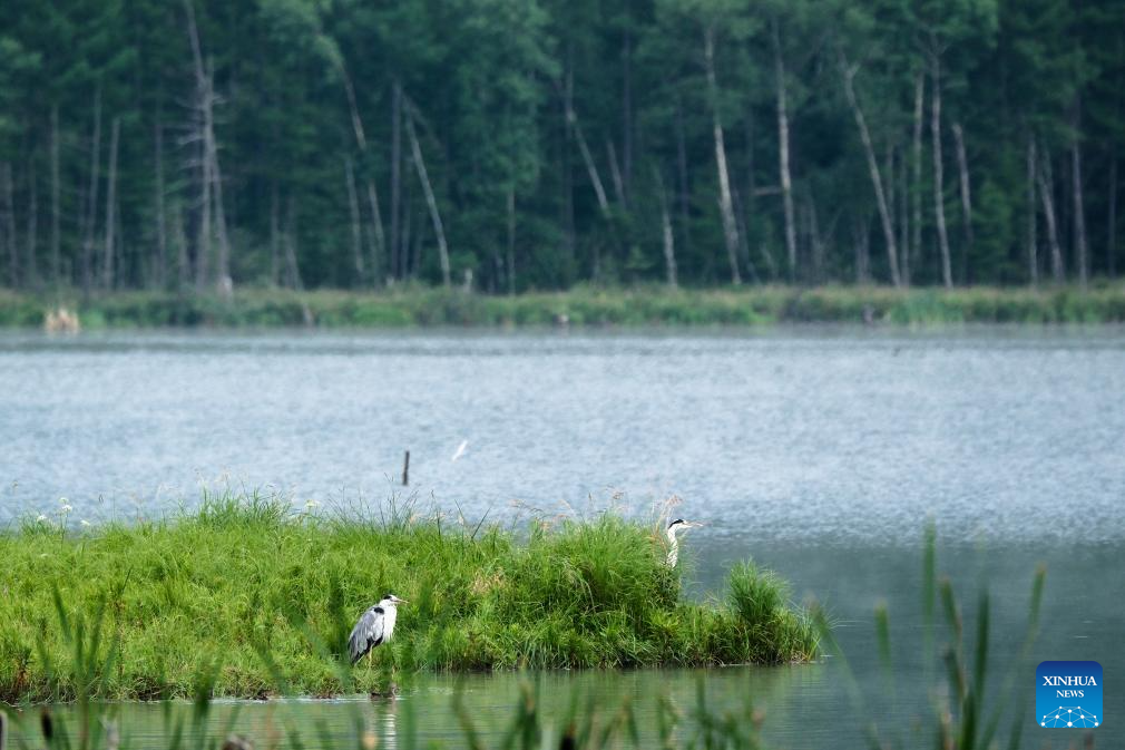 Water birds are seen at the Wusulangzi Lake in Arxan City of Hinggan League, north China's Inner Mongolia Autonomous Region, July 28, 2025.