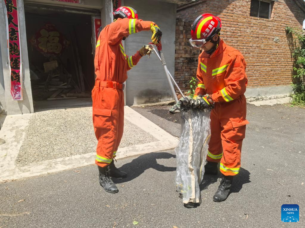 BEIJING, July 28 (Xinhua) -- On the quiet, suburban edges of Beijing, firefighters -- more accustomed to battling flames and responding to accidents -- arrive with snake hooks and capture bags as an unlikely drama unfolds.