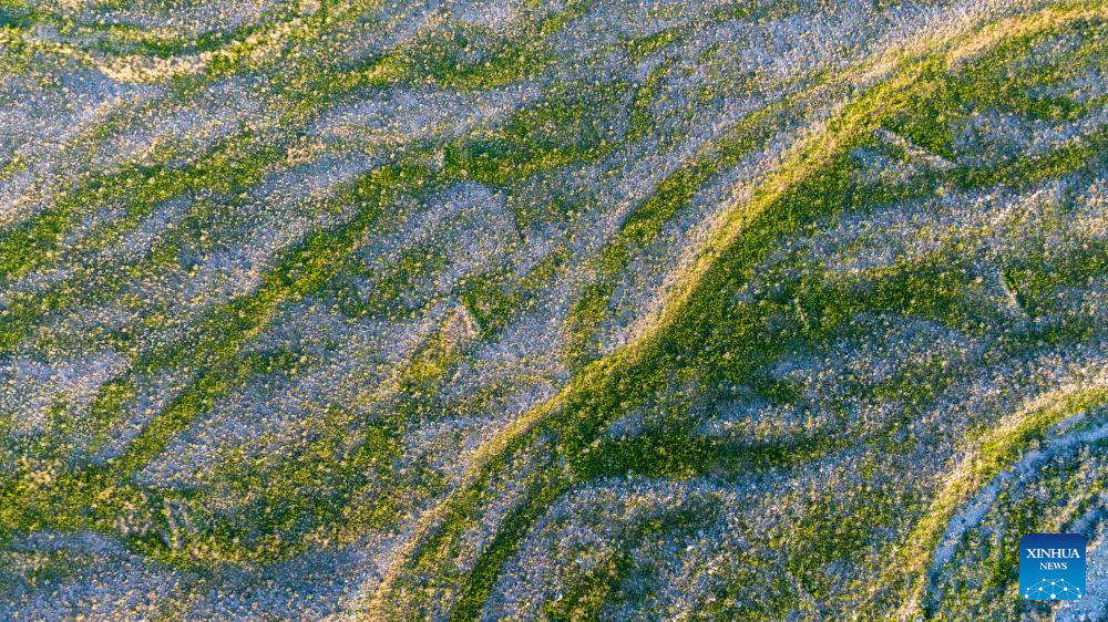 An aerial drone photo taken on July 29, 2025 shows lush grass and trees at the foot of the Helan Mountain in northwest China's Ningxia Hui Autonomous Region. (Xinhua/Wang Peng)
