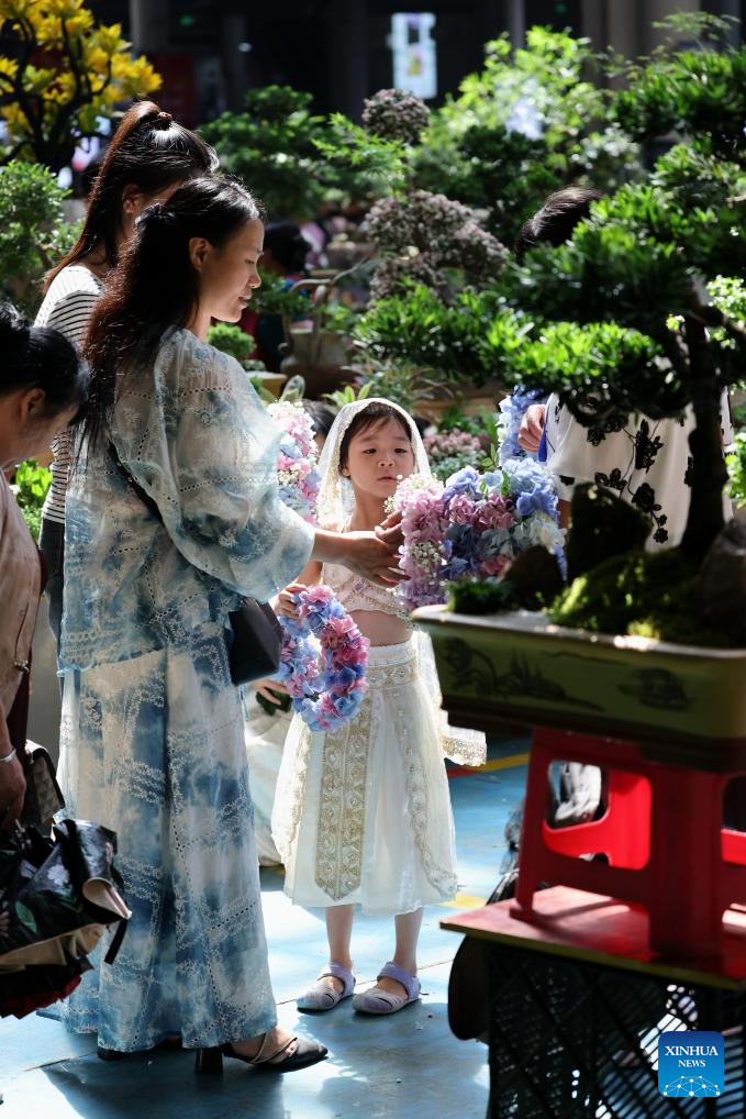 Florists make creative floral products at the Dounan Flower Market in Kunming, southwest China's Yunnan Province, July 28, 2025. As one of Asia's largest fresh-cut flower trading markets, the Dounan Flower Market attracts tourists from China and abroad.