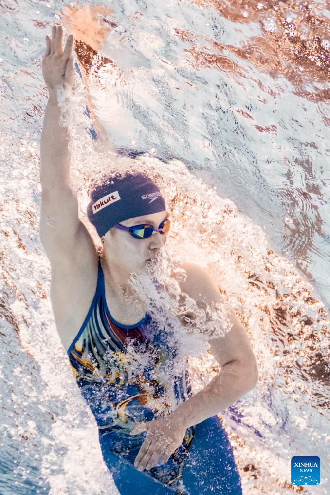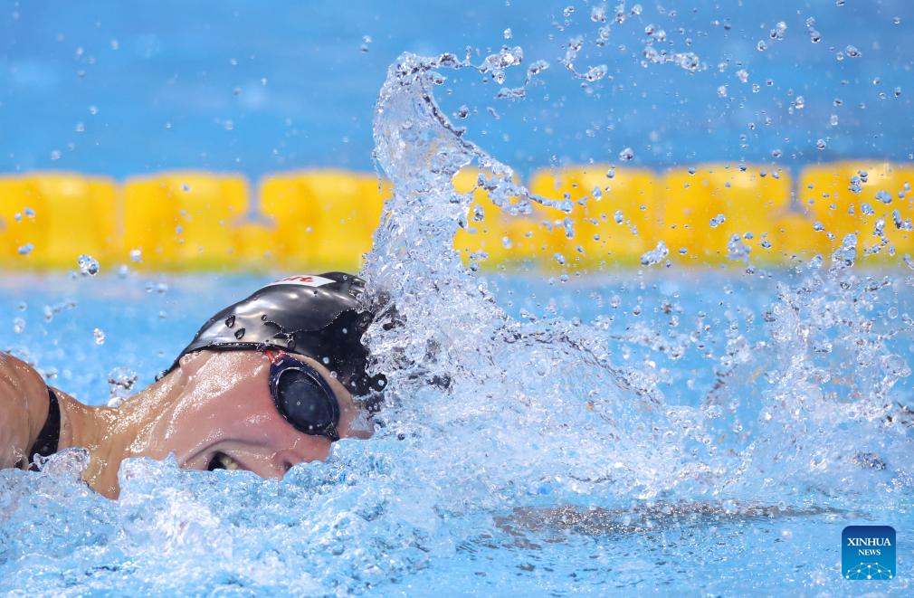 Li Bingjie of China competes during the women's 1500m freestyle final of swimming at the World Aquatics Championships in Singapore, July 29, 2025. (Xinhua/Xia Yifang)