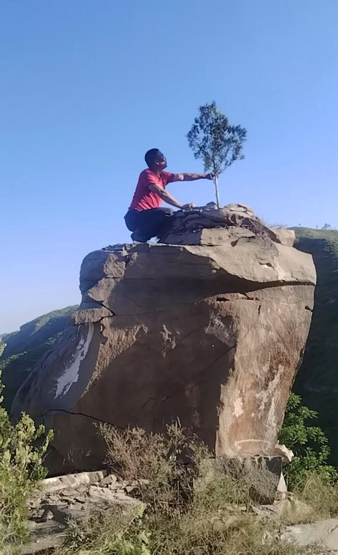 He recalled the early afforestation operations: with transport vehicles unable to access the sites, team members first carried fertile soil and seedlings up the mountain on their backs, then used ropes to lower workers down cliff faces to dig holes, fill soil, and plant trees.