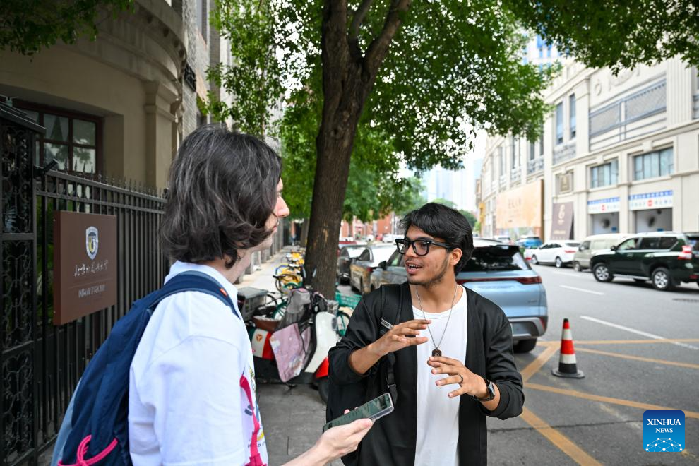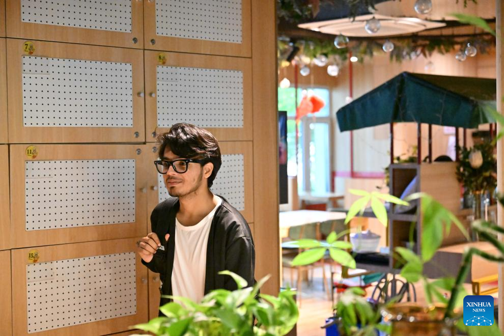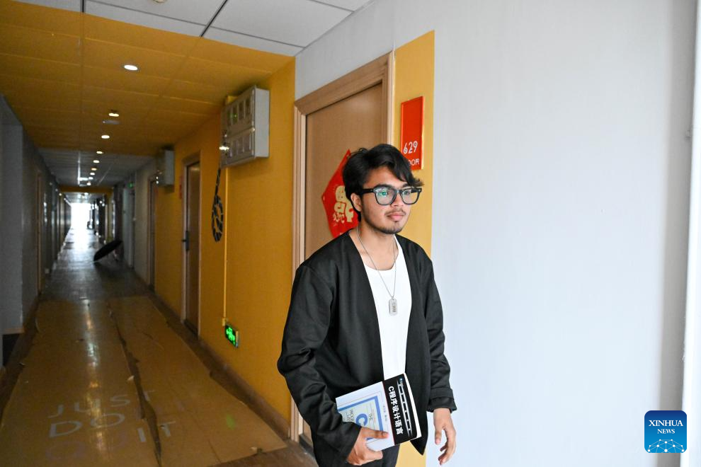Muhammad Mohsin returns to his apartment after class in north China's Tianjin, July 21, 2025. (Xinhua/Sun Fanyue)