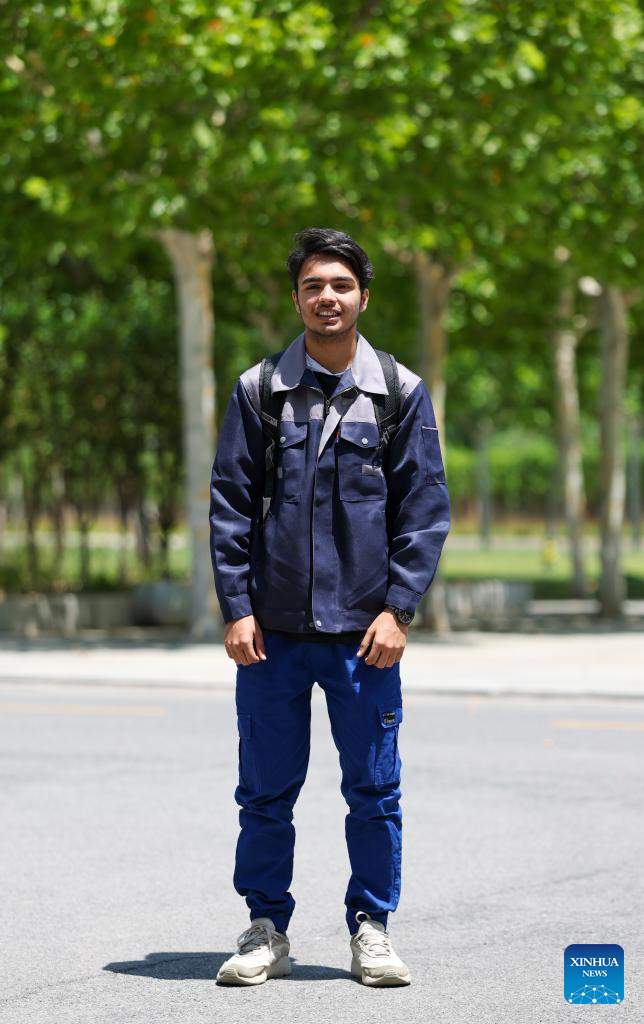 Muhammad Mohsin is pictured at Tianjin Modern Vocational Technology College in north China's Tianjin, June 16, 2025. (Xinhua/Sun Fanyue)