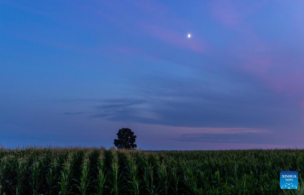 This photo taken on Aug. 1, 2025 shows the first quarter moon in the sky in Jiamusi City, northeast China's Heilongjiang Province. (Photo by Qu Yubao/Xinhua)