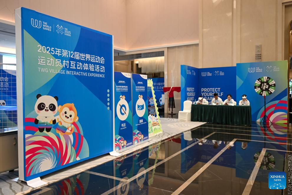 Photo taken on Aug. 3, 2025 shows an area of interactive activities in the TWG village for The World Games (TWG) 2025 Chengdu in Chengdu, southwest China's Sichuan Province, Aug. 3, 2025. (Xinhua/Xu Bingjie)