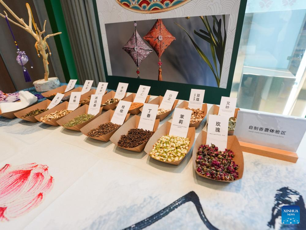 Photo taken on Aug. 3, 2025 shows the self-made sachet experience zone in the TWG village for The World Games (TWG) 2025 Chengdu in Chengdu, southwest China's Sichuan Province. (Xinhua/Wang Xi)