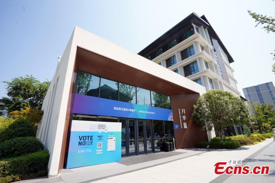 Photo taken on Aug. 3, 2025 shows the exterior of one of the dining halls for athletes and officials. (Photo: China News Service/An Yuan)