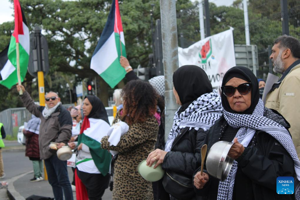 CAPE TOWN, Aug. 7 (Xinhua) -- South African healthcare workers from both public and private hospitals nationwide on Thursday protested Israel's weaponization of hunger and mass starvation in Gaza.