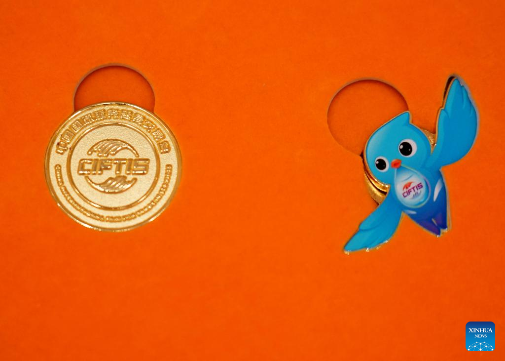 This photo taken on Aug. 11, 2025 shows some commodities related to the 2025 China International Fair for Trade in Services (CIFTIS) at Shougang Park in Beijing, capital of China. The 2025 China International Fair for Trade in Services (CIFTIS) is scheduled to open on Sept. 10 at Shougang Park in Beijing. (Xinhua/Zhang Chenlin)