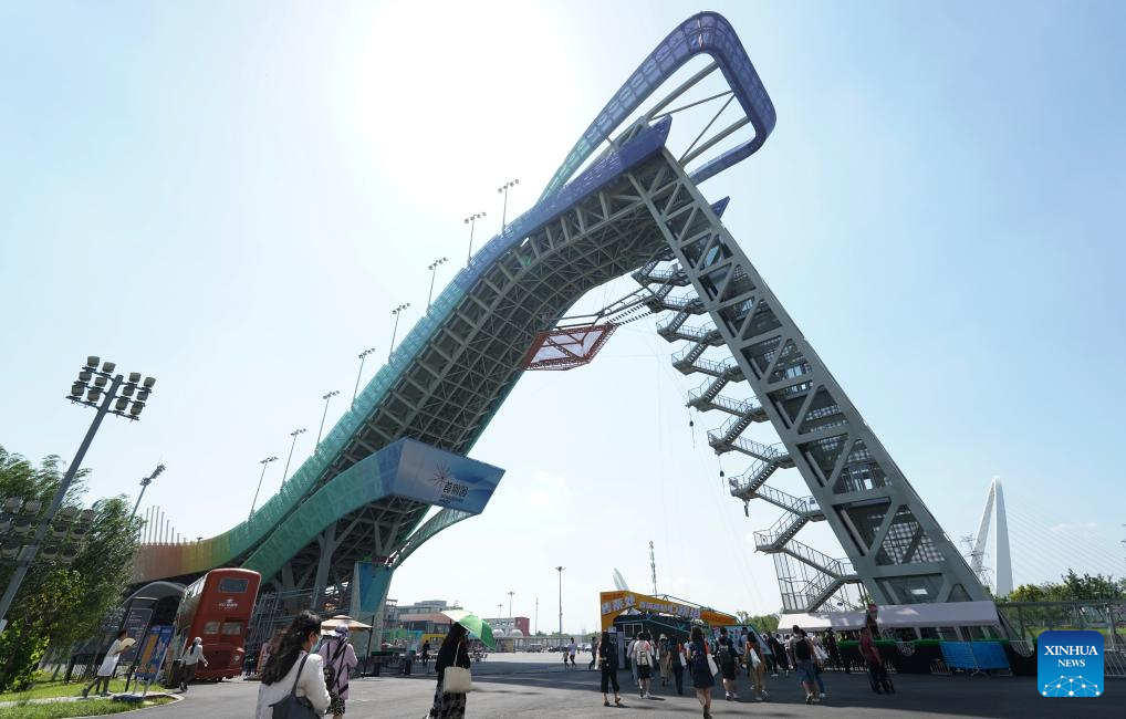 This photo taken on Aug. 11, 2025 shows a view of Shougang Park in Beijing, capital of China. The 2025 China International Fair for Trade in Services (CIFTIS) is scheduled to open on Sept. 10 at Shougang Park in Beijing. (Xinhua/Zhang Chenlin)