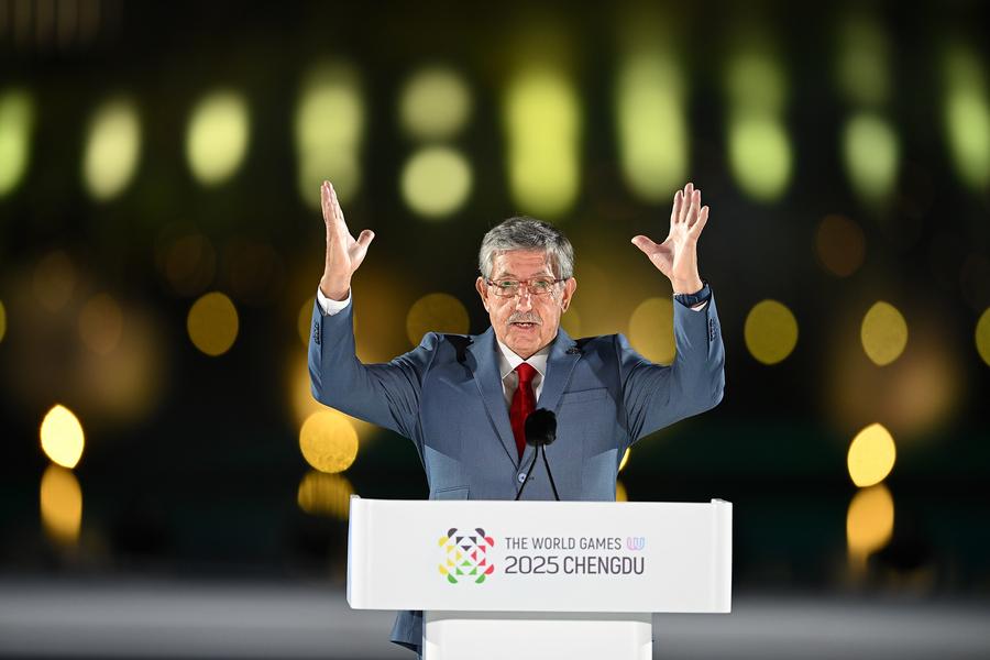 Perurena delivers a speech during the opening ceremony of the Chengdu World Games, on Aug. 7, 2025. (Xinhua/Chen Zhenhai)