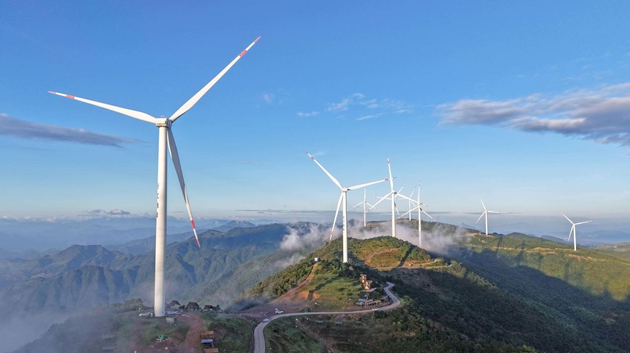 Photo shows a wind farm in Pan'an county, Jinhua, east China's Zhejiang province. (Photo/Wang Huabin)