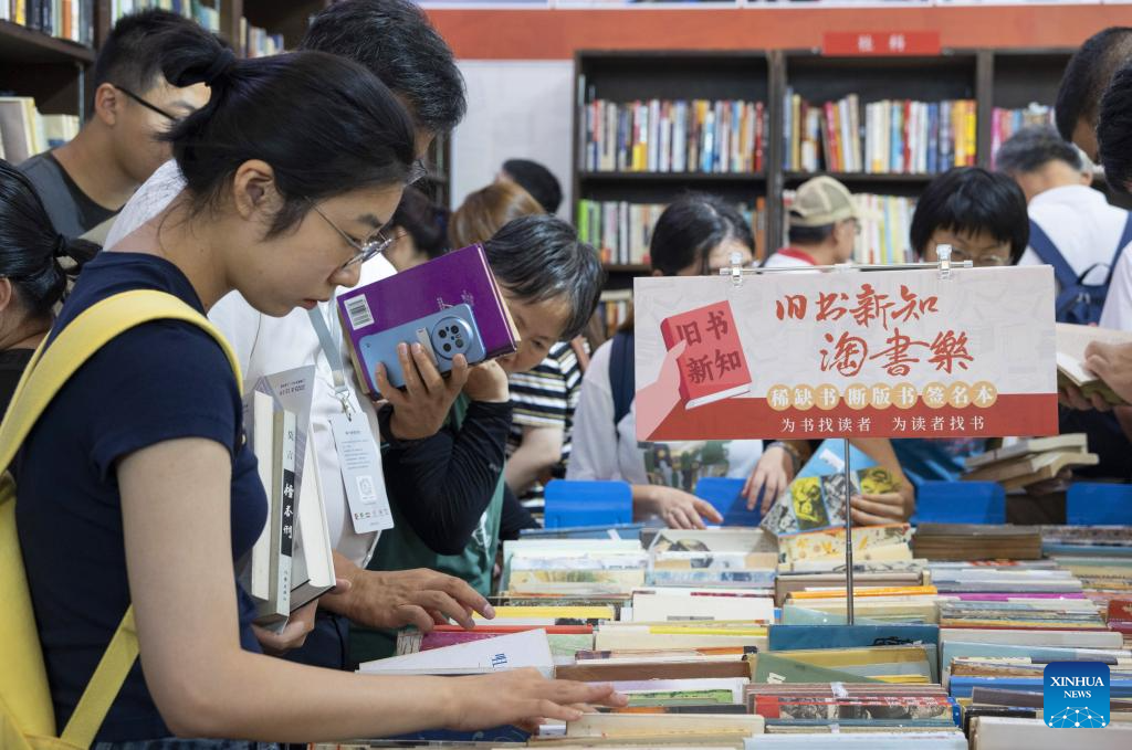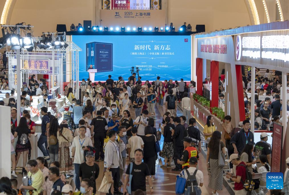 People visit the 2025 Shanghai Book Fair in Shanghai, east China, Aug. 13, 2025. The book fair kicked off on Wednesday and will last until Aug. 19. (Xinhua/Fang Zhe)