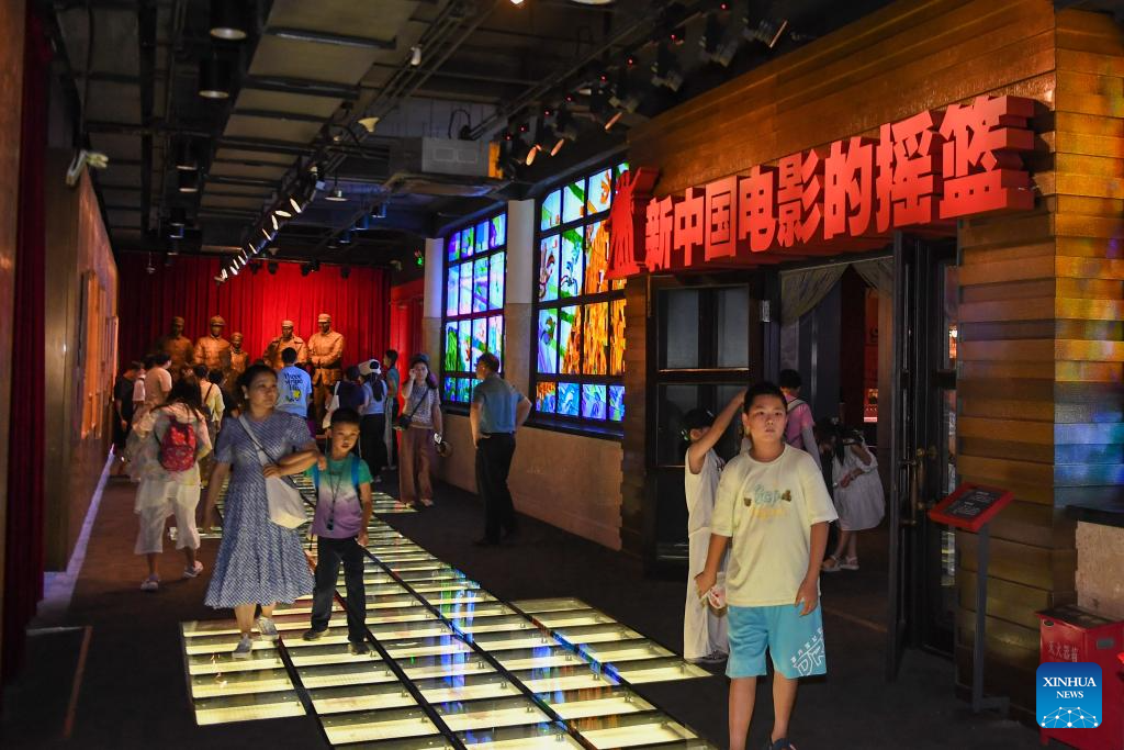 People visit a film museum built on the former site of Changchun Film Studio in Changchun, northeast China's Jilin Province, Aug. 7, 2025. Since the start of the summer vacation, the film museum has attracted visitors with film resources, with peak daily visitor numbers exceeding 8,000. (Xinhua/Zhang Nan)