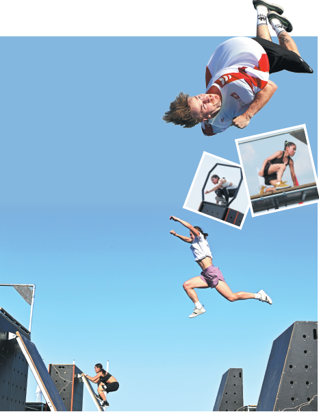 Many competitors arrived with backgrounds in disciplines like gymnastics and climbing — now channeling their skills into parkour's philosophy of fluid movement, personal creativity and tight-knit community.