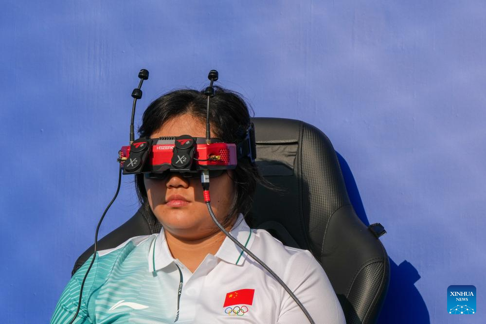 He Yutong of China competes during the Drone Sports Drone Racing at The World Games 2025 in Chengdu, southwest China's Sichuan Province, Aug. 15, 2025. (Xinhua/Li Bo)