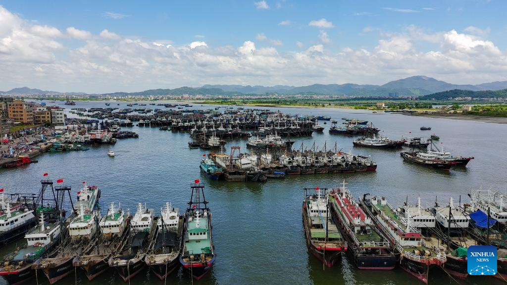 A drone photo taken on Aug. 16, 2025 shows a view of the Bohe fishing port in Maoming City, south China's Guangdong Province. Fishing boats set sail on Saturday after the summer fishing ban lifted in South China Sea. (Xinhua/Xiao Ennan)